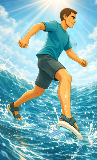 An experimental floating footwear system for water locomotion, focused on dynamic balance and safety.